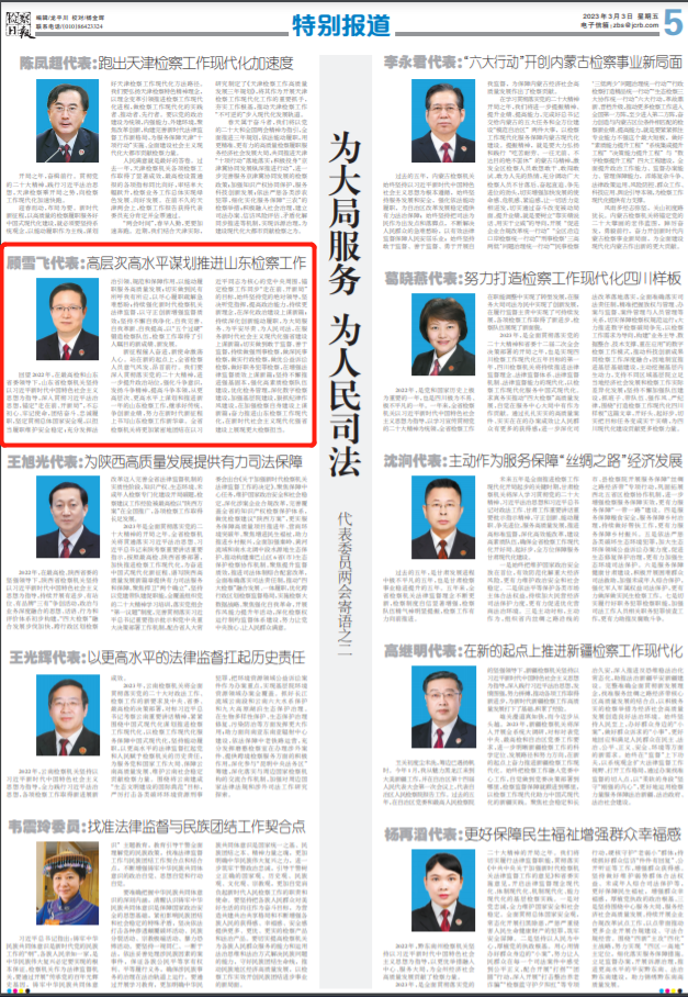 全国人大代表、山东省人民检察院党组书记、检察长顾雪飞