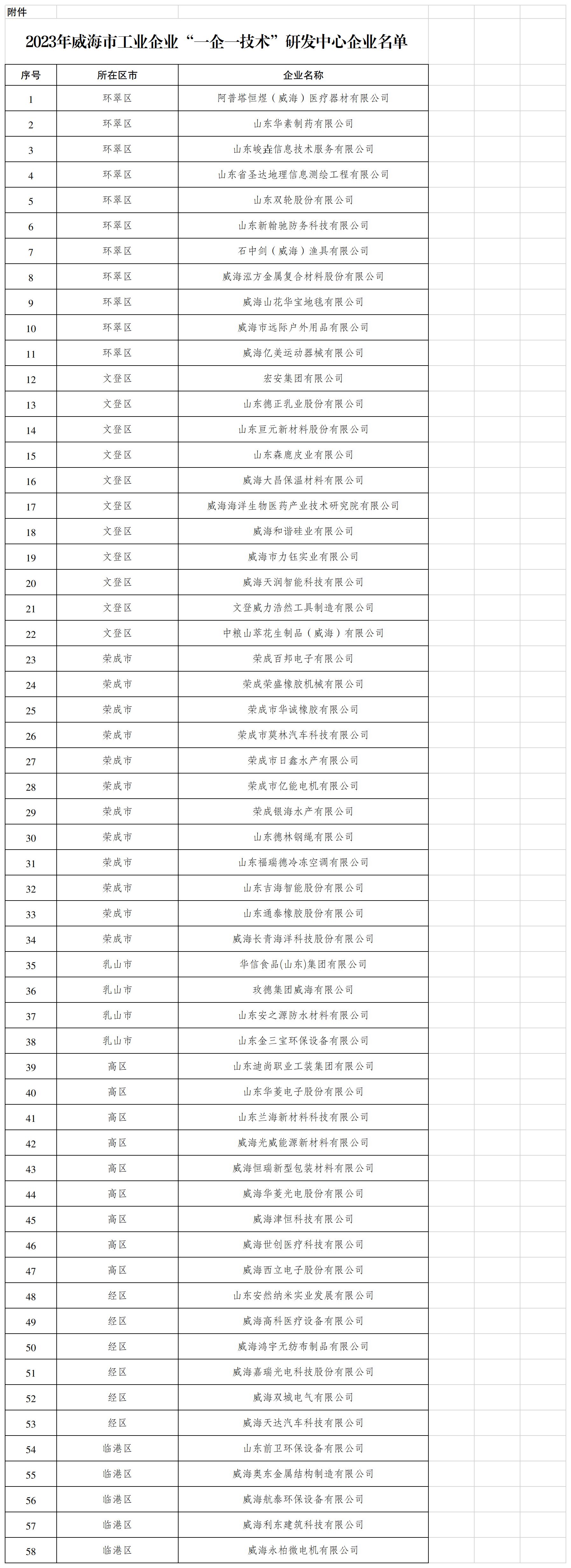 根据《bst365.com_英国365bet娱乐_bte365工业企业“一企一技术”研发中心培育认定工作指南》(威工信发〔2021〕30号)要求,市工业和信息化局组织开展了2023年bst365.com_英国365bet娱乐_bte365工业企业“一企一技术”研发中心认定工作。经企业申报、各区市推荐、市局审核、会议研究、网上公示等程序,认定阿普塔恒煜(威海)医疗器材有限公司等58家企业研发机构为2023年bst365.com_英国365bet娱乐_bte365工业企业“一企一技术”研发中心,现予公布(企业名单见附件)。